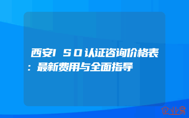 - 西安ISO认证咨询价格表:最新费用与全面指导
