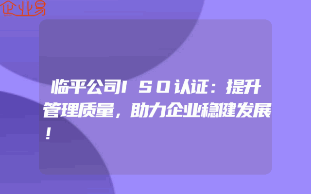 - 临平公司ISO认证:提升管理质量,助力企业稳健发展!