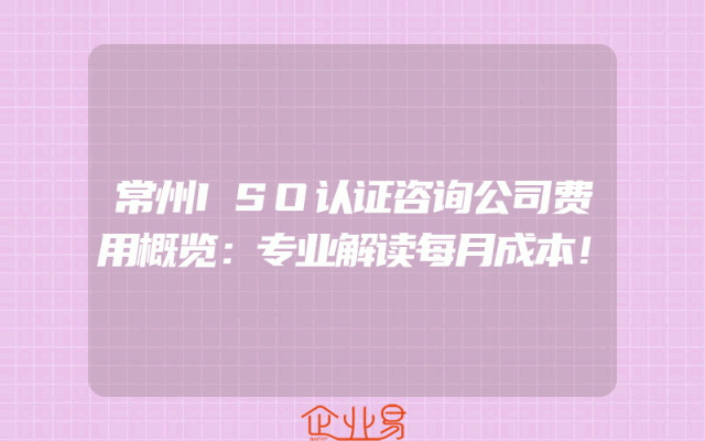 - 常州ISO认证咨询公司费用概览:专业解读每月成本!
