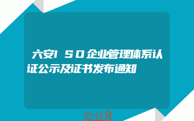 - 六安ISO企业管理体系认证公示及证书发布通知