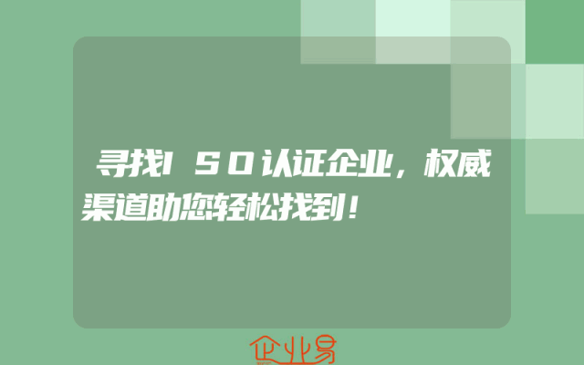 - 寻找ISO认证企业,权威渠道助您轻松找到!