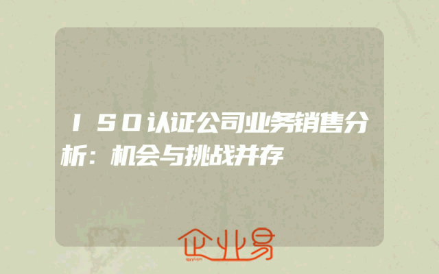 - ISO认证公司业务销售分析:机会与挑战并存