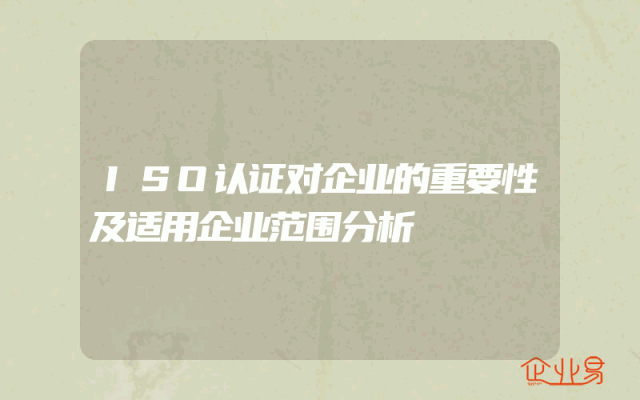 - ISO认证对企业的重要性及适用企业范围分析