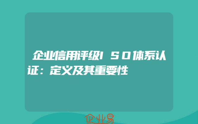 - 企业信用评级ISO体系认证:定义及其重要性