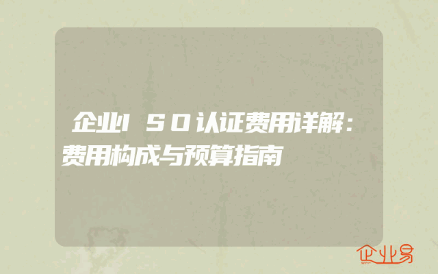 - 企业ISO认证费用详解:费用构成与预算指南