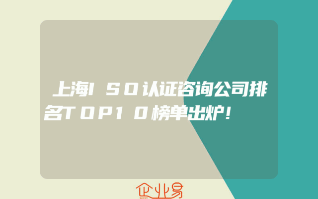 - 上海ISO认证咨询公司排名TOP10榜单出炉!