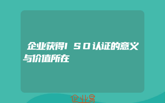 - 企业获得ISO认证的意义与价值所在