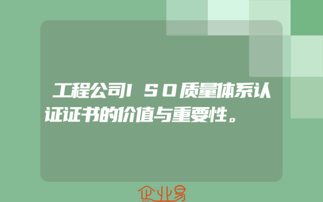 - 工程公司ISO质量体系认证证书的价值与重要性。