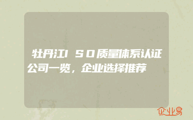 - 牡丹江ISO质量体系认证公司一览,企业选择推荐