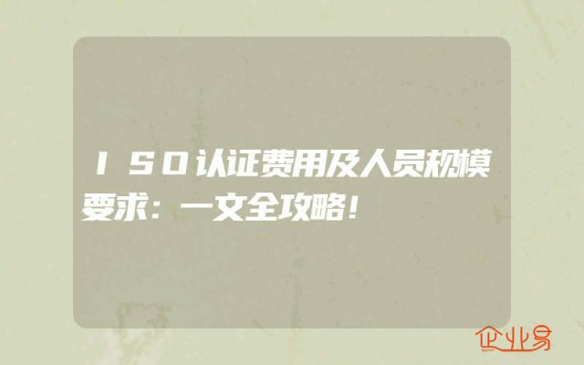 - ISO认证费用及人员规模要求解析:一文全攻略!一、ISO认证概述ISO认证是企业追求卓越、保证质量的重要标识,也是企业参与国际市场竞争的必备资质。随着经济全球化的发展,越来越多的企业开始寻求ISO认证,以提升自身的竞争力。ISO认证