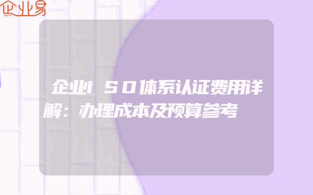 - 企业ISO体系认证费用详解:办理成本及预算参考