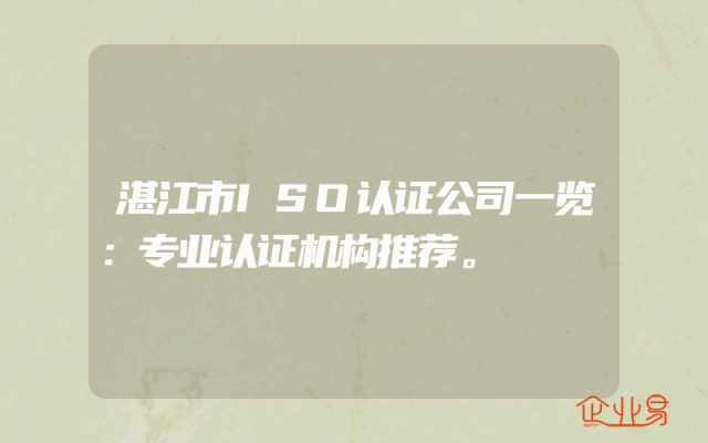 - 湛江市ISO认证公司一览:专业认证机构推荐。