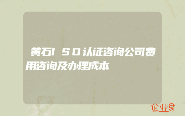 - 黄石ISO认证咨询公司费用咨询及办理成本