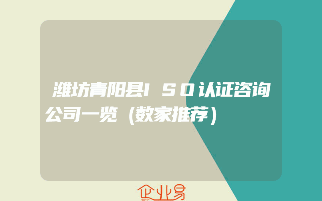 - 潍坊青阳县ISO认证咨询公司一览(数家推荐)
