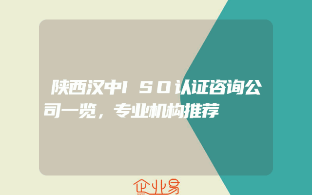- 陕西汉中ISO认证咨询公司一览,专业机构推荐