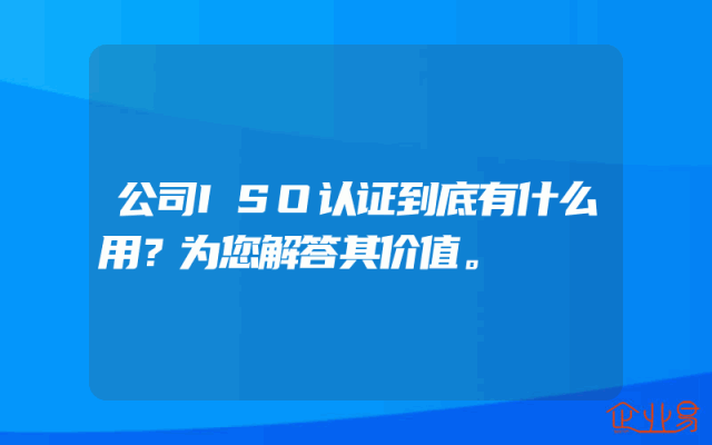 - 公司ISO认证到底有什么用?为您解答其价值。