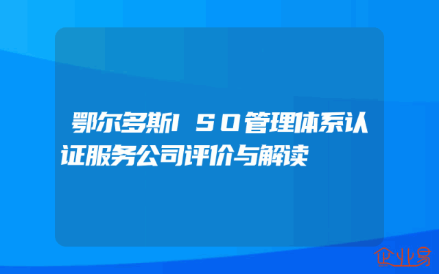 - 鄂尔多斯ISO管理体系认证服务公司评价与解读