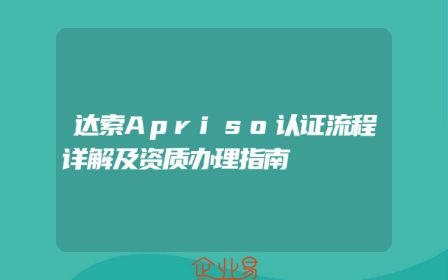 - 达索Apriso认证流程详解及资质办理指南