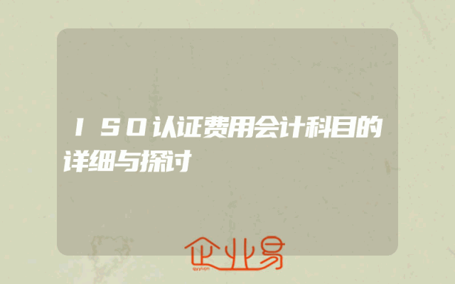 - ISO认证费用会计科目的详细与探讨