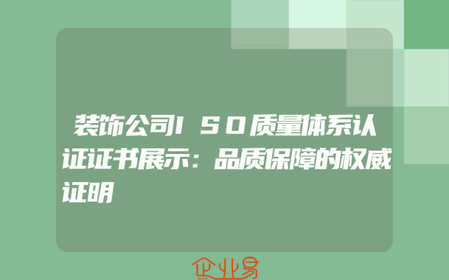 - 装饰公司ISO质量体系认证证书展示:品质保障的权威证明