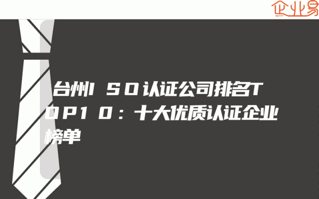 - 台州ISO认证公司排名TOP10:十大优质认证企业榜单