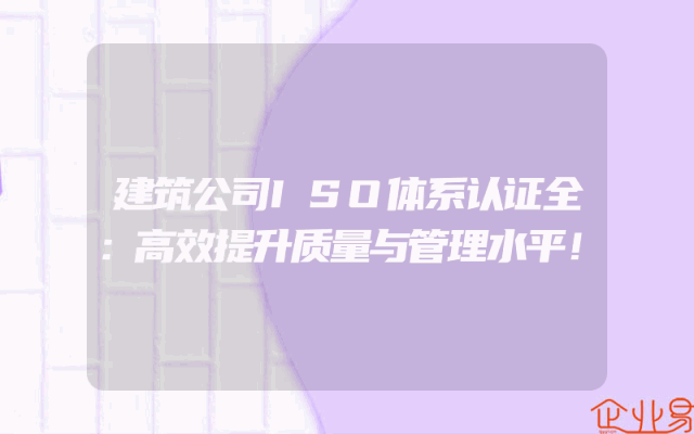 - 建筑公司ISO体系认证全:高效提升质量与管理水平!