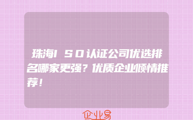 - 珠海ISO认证公司优选排名哪家更强?优质企业倾情推荐!