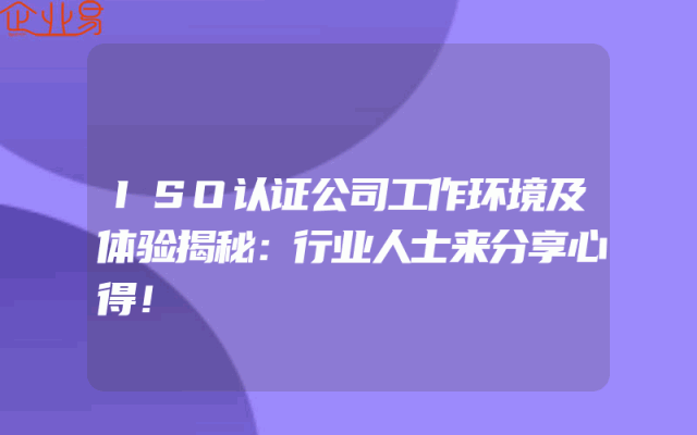 - ISO认证公司工作环境及体验揭秘:行业人士来分享心得!