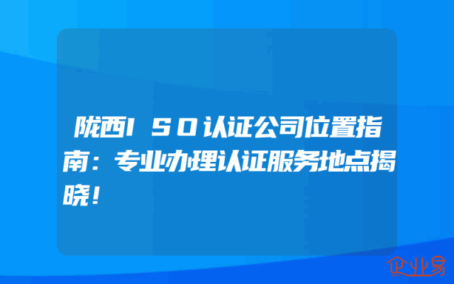- 陇西ISO认证公司位置指南:专业办理认证服务地点揭晓!