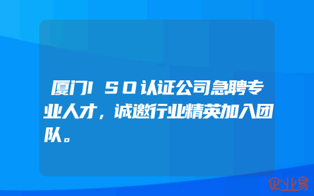 - 厦门ISO认证公司急聘专业人才,诚邀行业精英加入团队。