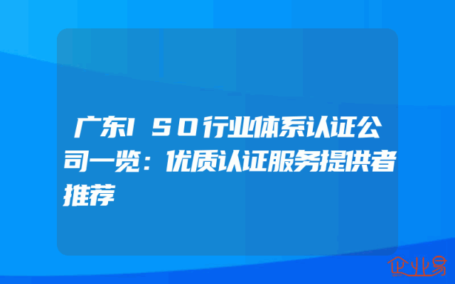 - 广东ISO行业体系认证公司一览:优质认证服务提供者推荐