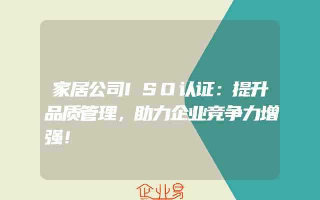 - 家居公司ISO认证:提升品质管理,助力企业竞争力增强!