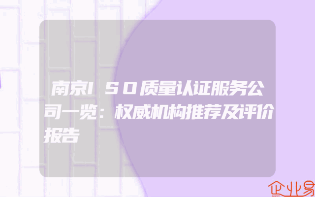 - 南京ISO质量认证服务公司一览:权威机构推荐及评价报告