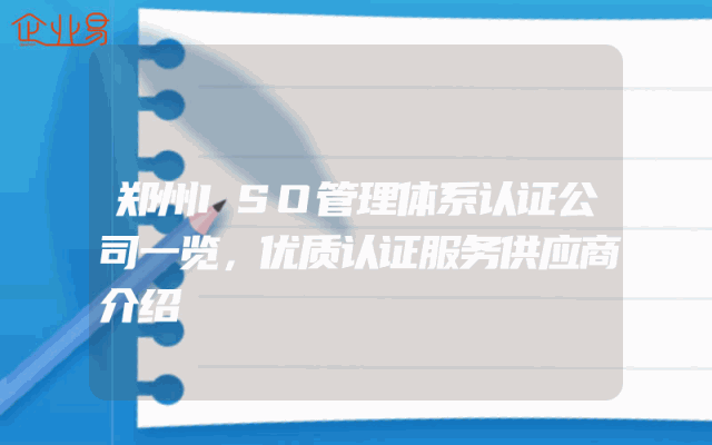 - 郑州ISO管理体系认证公司一览,优质认证服务供应商介绍