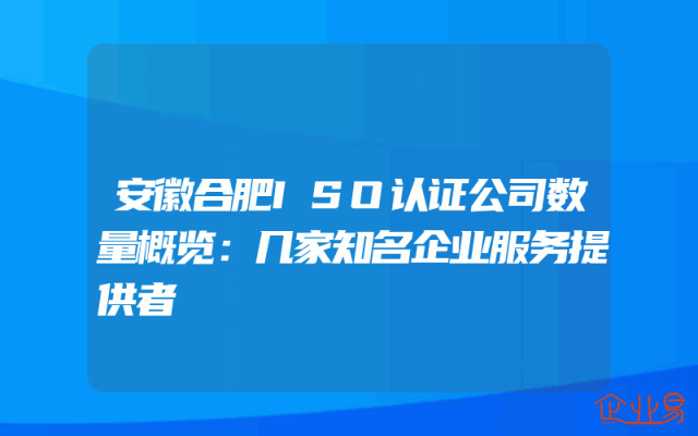 - 安徽合肥ISO认证公司数量概览:几家知名企业服务提供者
