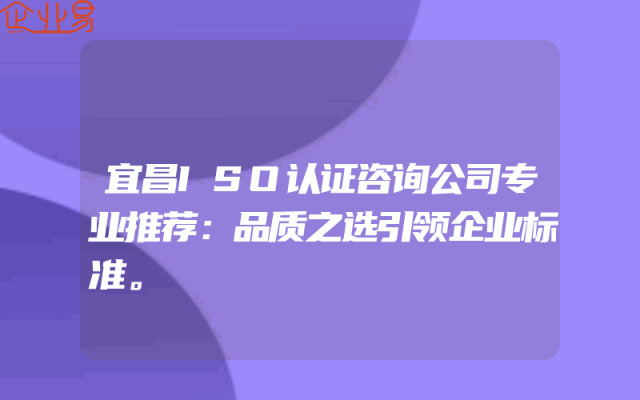 - 宜昌ISO认证咨询公司专业推荐:品质之选引领企业标准。