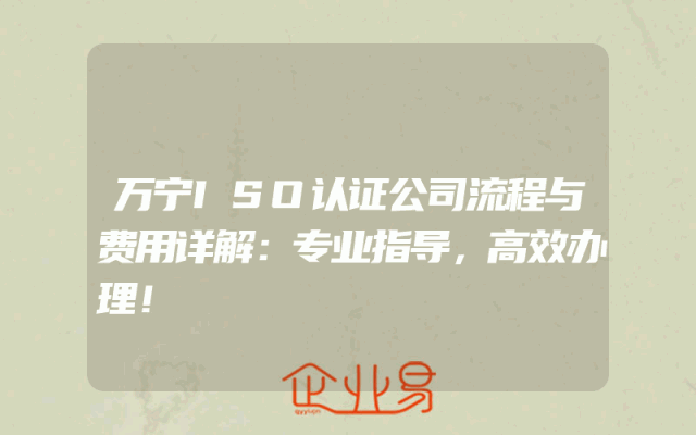 - 万宁ISO认证公司流程与费用详解:专业指导,高效办理!