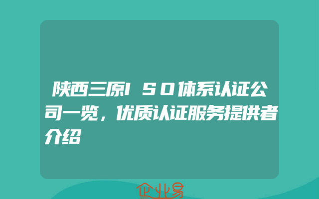 - 陕西三原ISO体系认证公司一览,优质认证服务提供者介绍