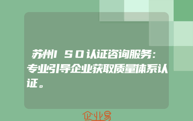 - 苏州ISO认证咨询服务:专业引导企业获取质量体系认证。