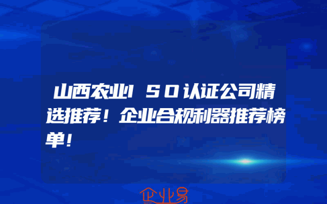 - 山西农业ISO认证公司精选推荐!企业合规利器推荐榜单!