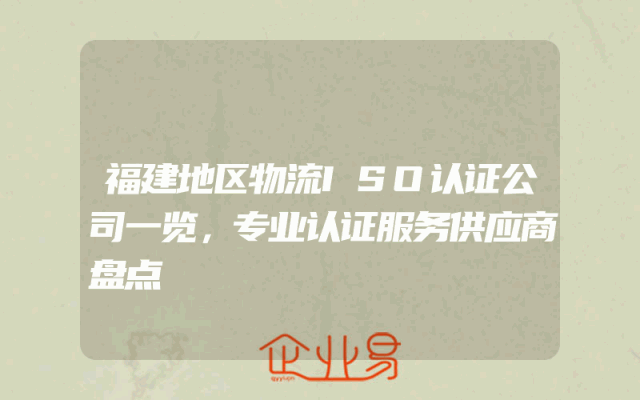 - 福建地区物流ISO认证公司一览,专业认证服务供应商盘点