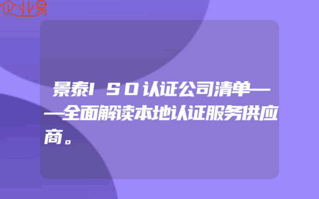 - 景泰ISO认证公司清单——全面解读本地认证服务供应商。
