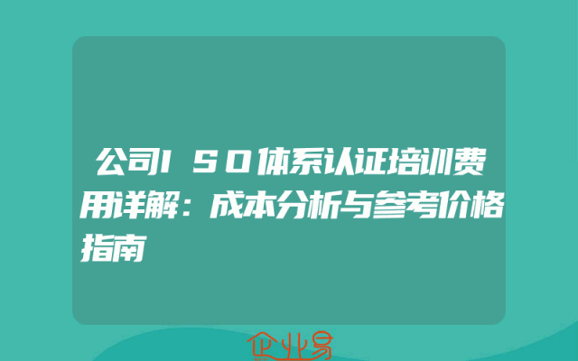 - 公司ISO体系认证培训费用详解:成本分析与参考价格指南