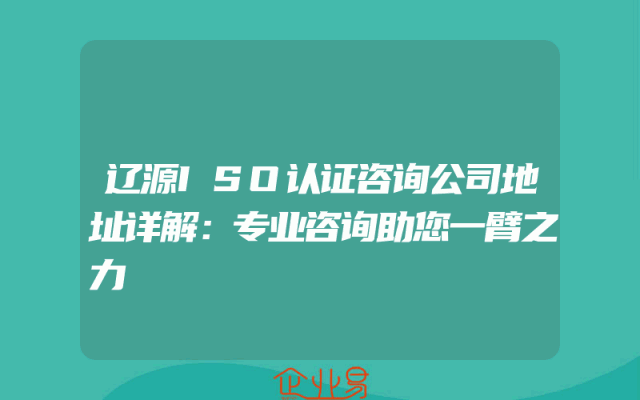 - 辽源ISO认证咨询公司地址详解:专业咨询助您一臂之力