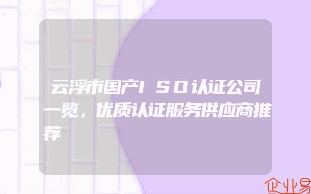 - 云浮市国产ISO认证公司一览,优质认证服务供应商推荐
