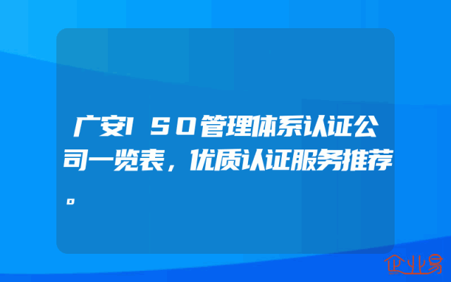 - 广安ISO管理体系认证公司一览表,优质认证服务推荐。