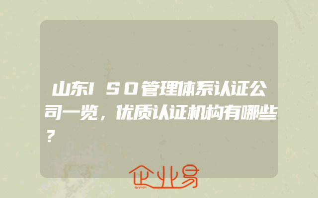 - 山东ISO管理体系认证公司一览,优质认证机构有哪些?