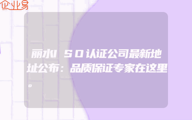- 丽水ISO认证公司最新地址公布:品质保证专家在这里。
