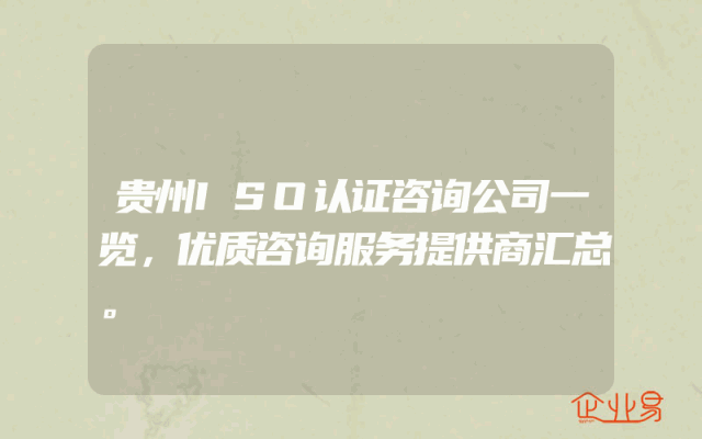 - 贵州ISO认证咨询公司一览,优质咨询服务提供商汇总。