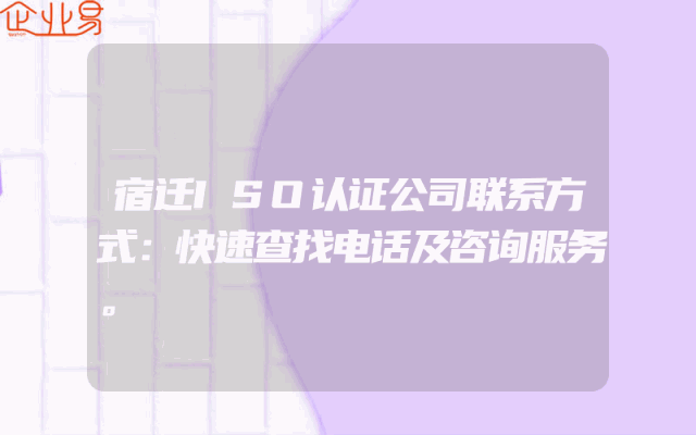 - 宿迁ISO认证公司联系方式:快速查找电话及咨询服务。